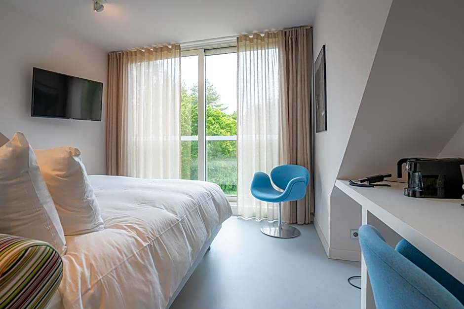 This small room is 26 ft² and has a 5.2 foot wide bed and a rain shower. This room can only be reached by stairs.